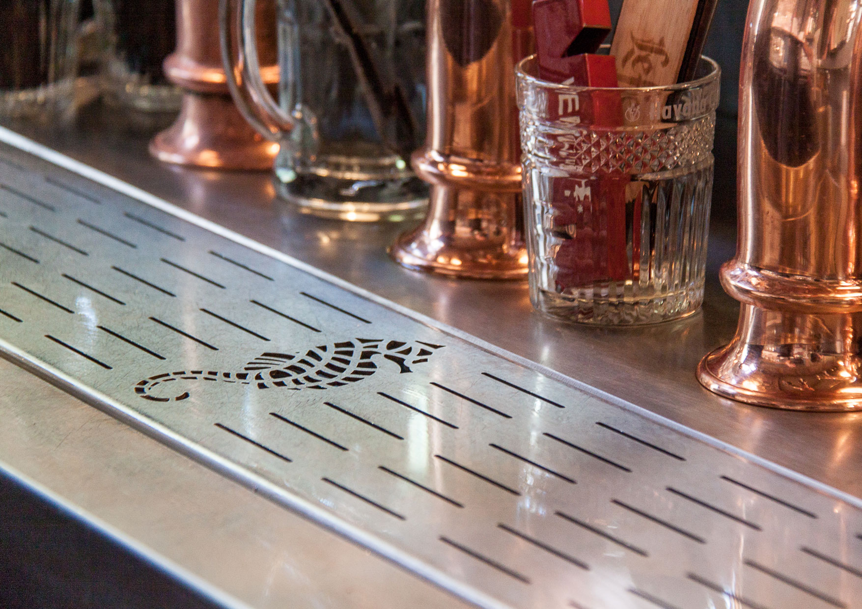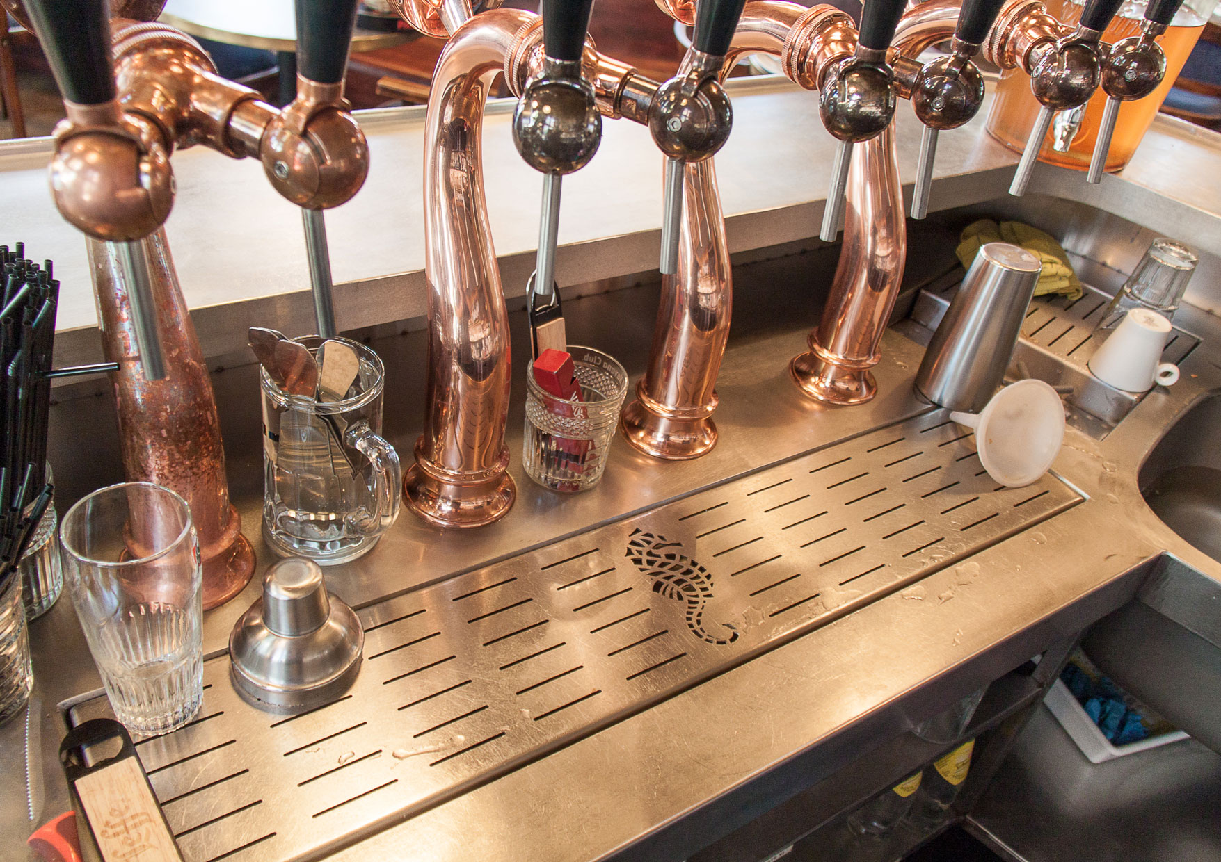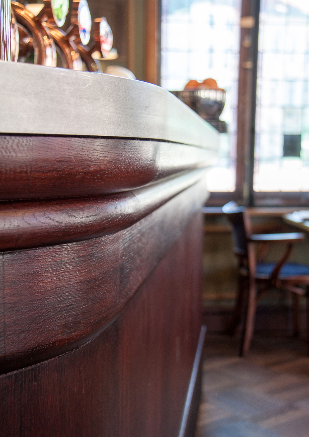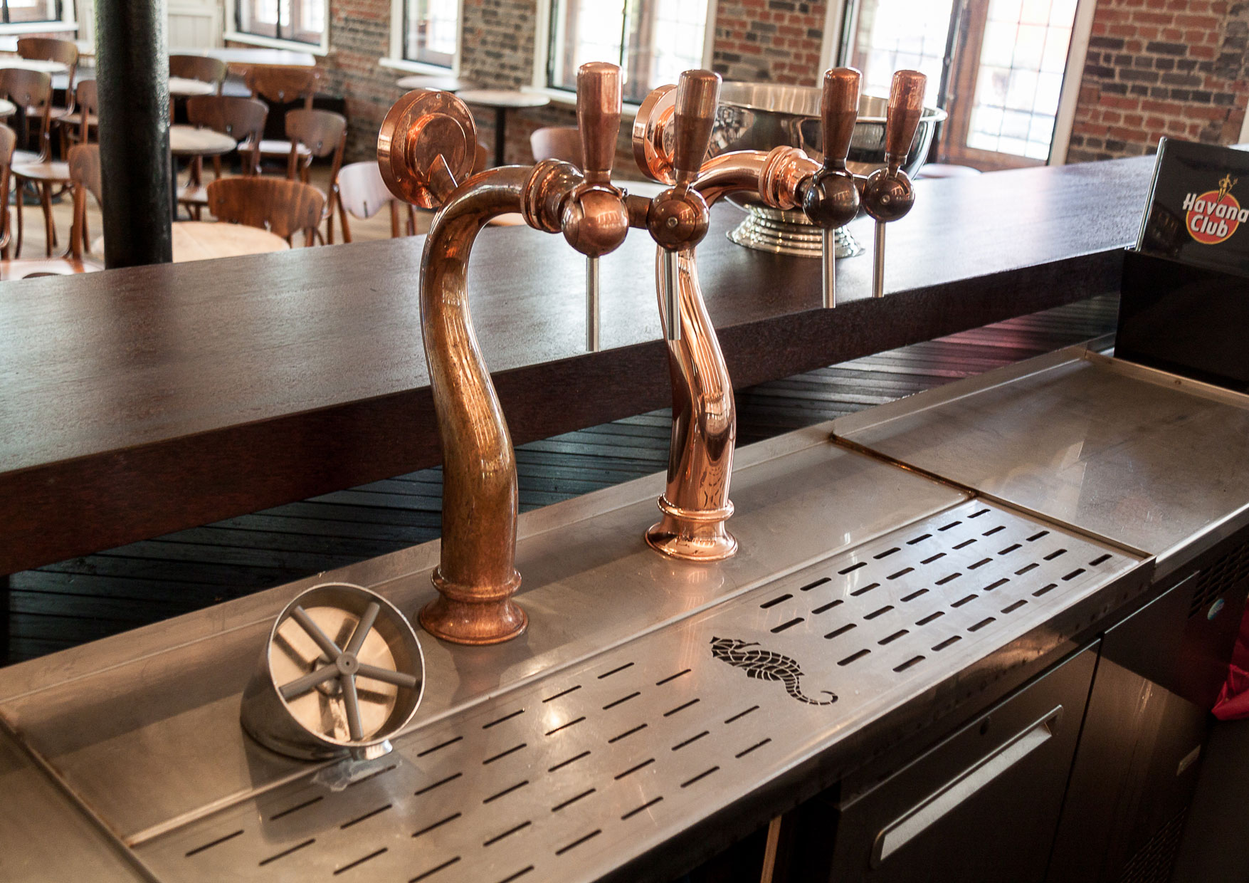 Conception et réalisation des bars et arrière Bar du Bar-Brasserie le Cheval Marin.