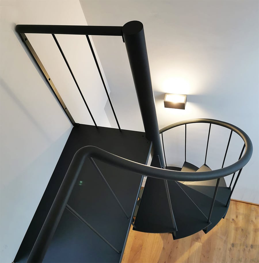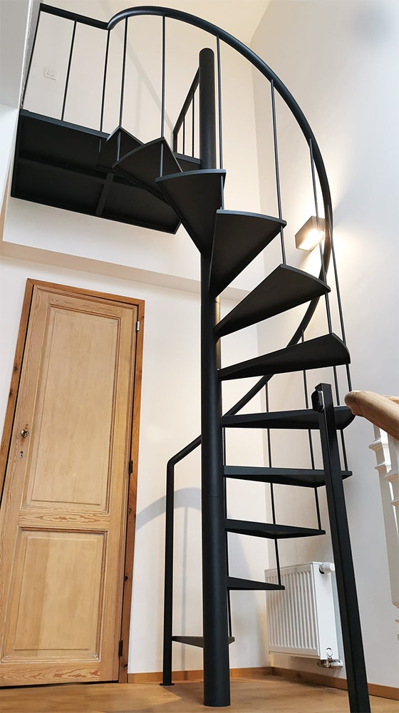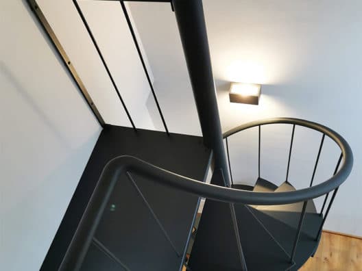 Un escalier en colimaçon sur mesure aux lignes épurées. Un ouvrage adapté aux amoureux d’architecture.