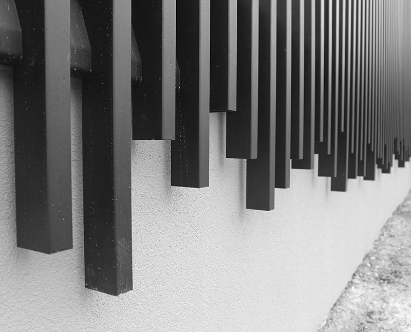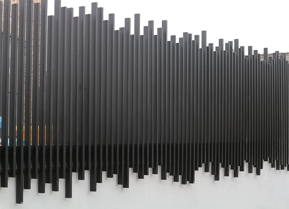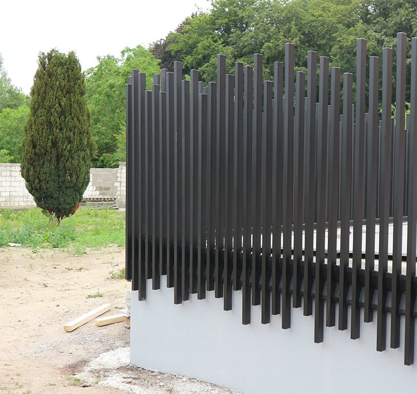 Un garde corps en métal noir au motif aléatoire: une touche contemporaine pour vos espaces extérieurs.