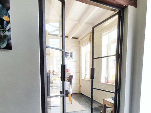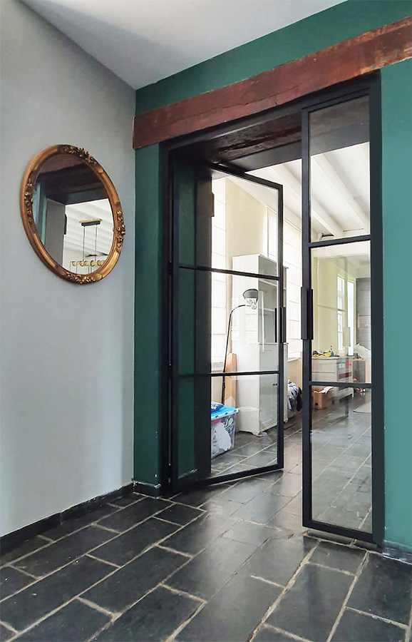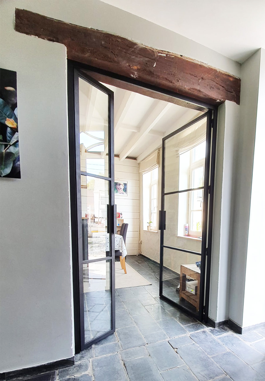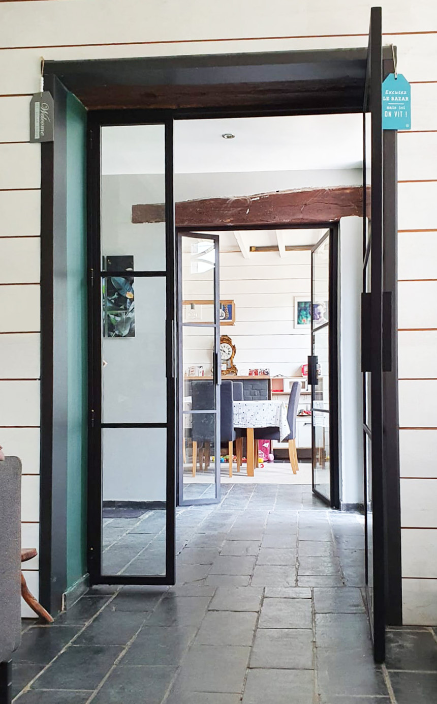 Deux doubles portes vitrées. Sobres, élégantes et intemporelles.