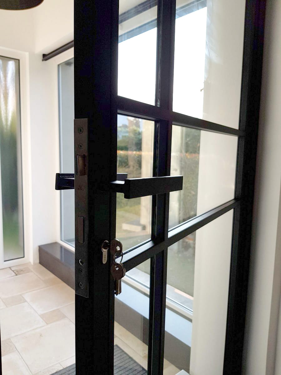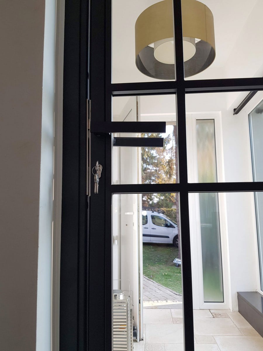 Porte en verre sas d’entrée, fermeture à clé