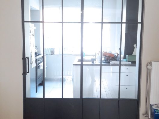 Porte coulissante vitrée en acier style atelier d’artiste