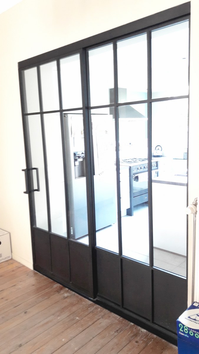 Porte coulissante vitrée en acier