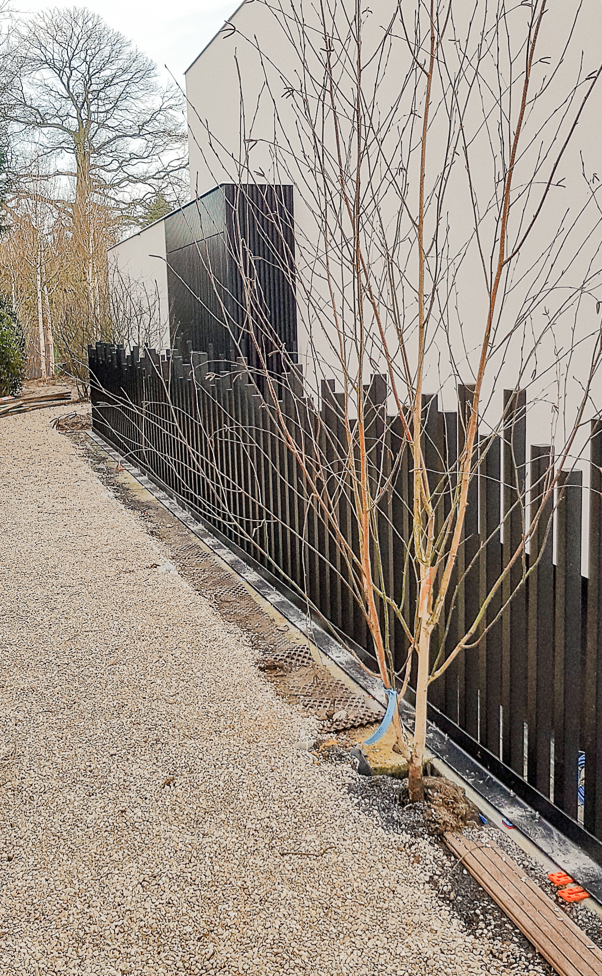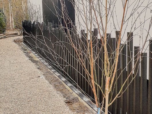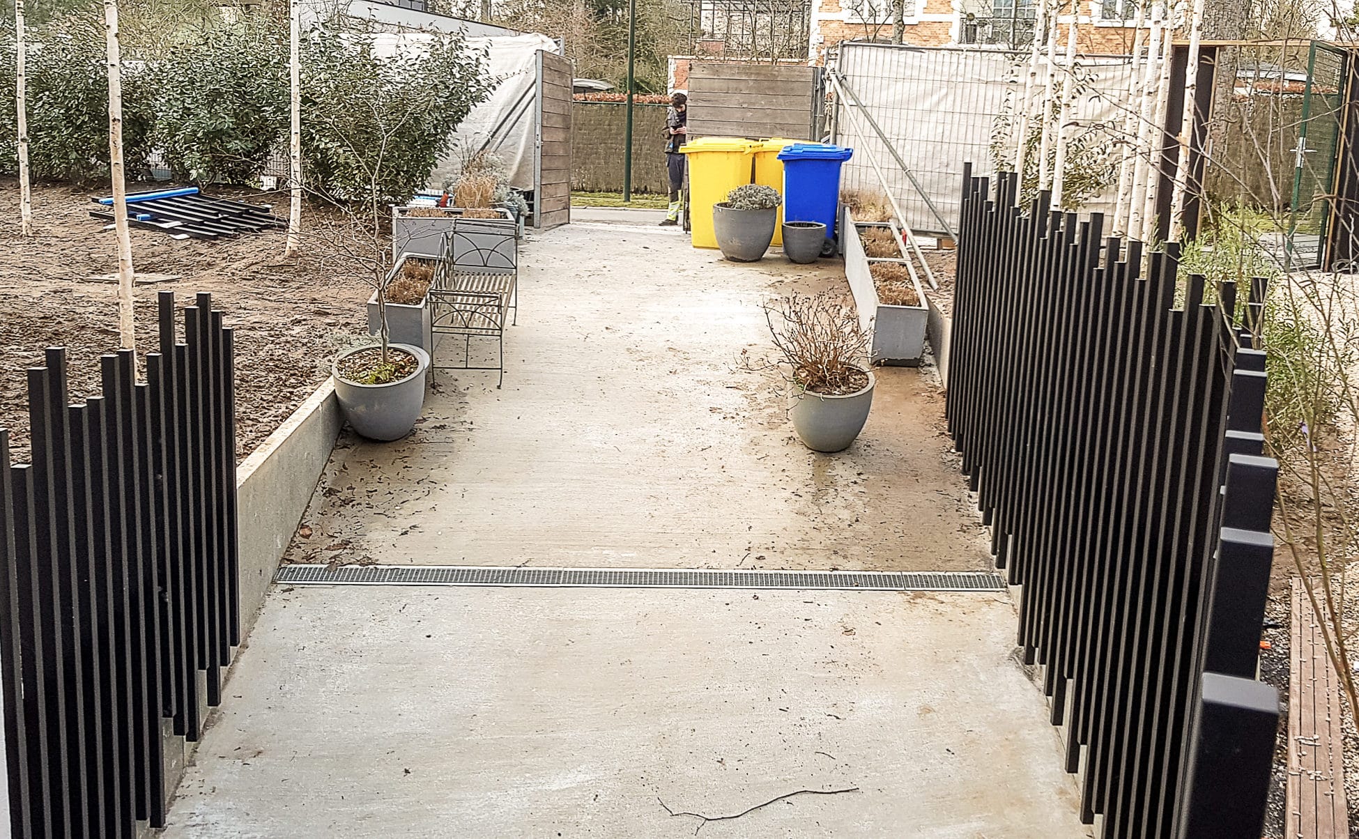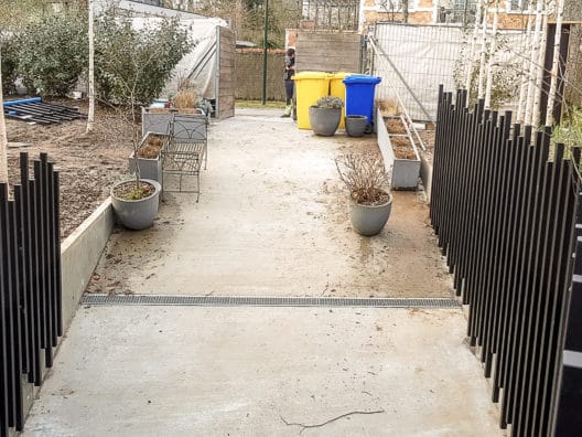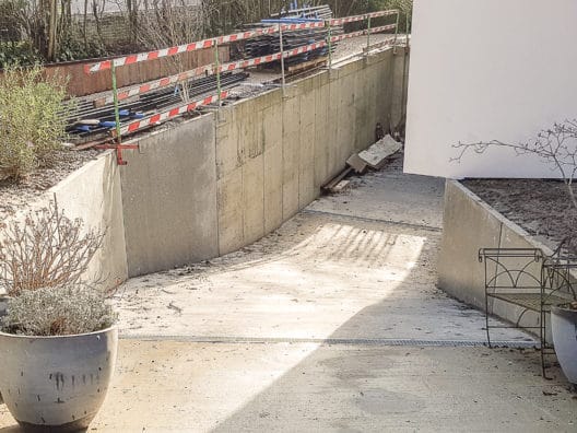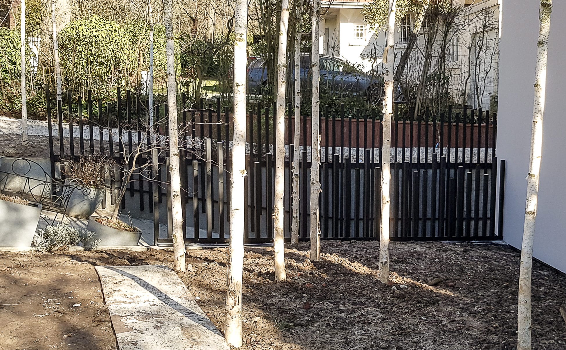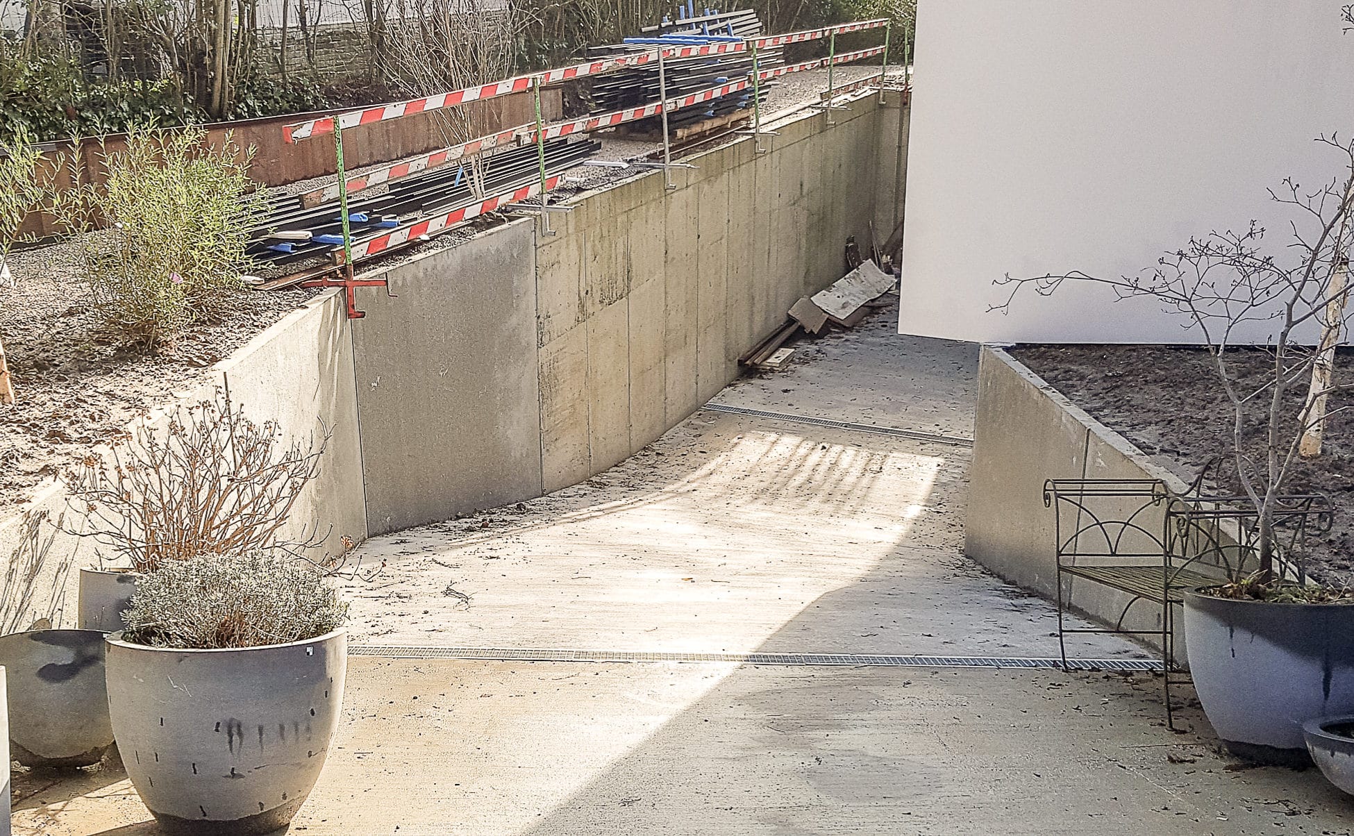Garde corps avec montant disposés de manière séquentielle et servant de cache mur béton